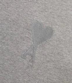 Pull en jersey de laine mérinos feutrée noir. Logo Ami de Cœur tricotée en rouge sur la poitrine. Col à capuche avec liens de serrage. Manches longues avec poignets côtelés. Poche kangourou sur le devant. Coupe droite large. Base droite côtelée.