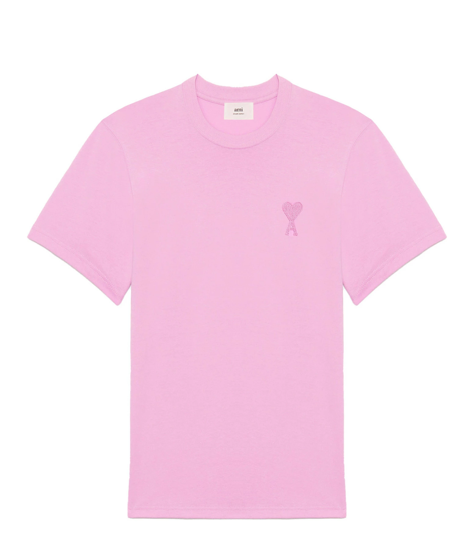 Tee-shirt unisexe en coton rose avec logo ton sur ton “Ami de cœur” brodé sur la poitrine. Col rond côtelé. Manches courtes. Coupe droite. Base droite.