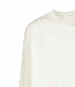 Pull en laine gris. Col rond côtelé. Manches longues avec poignets côtelés. Fentes latérales à boutons pressions. Coupe droite ample. Base droite côtelée.