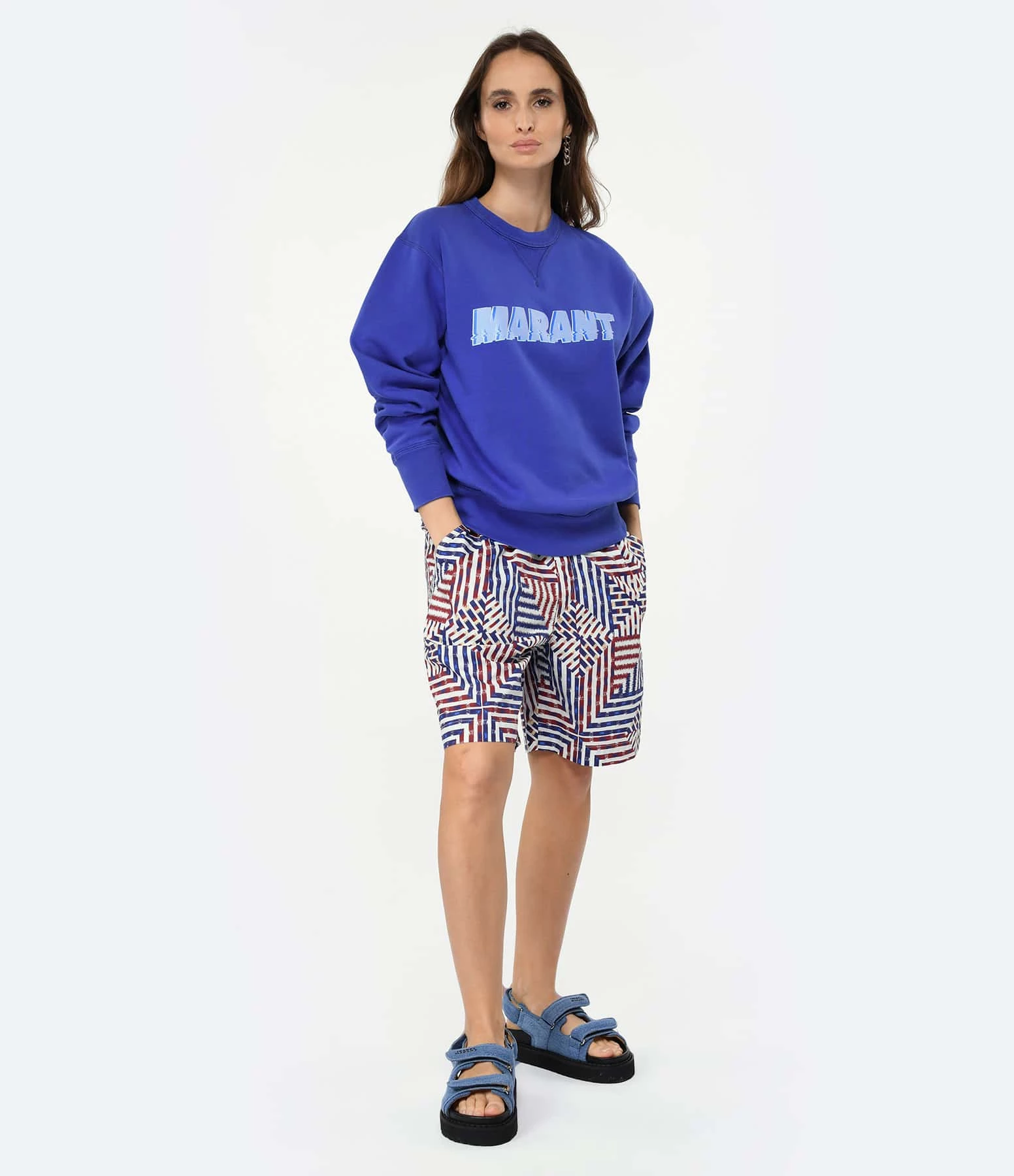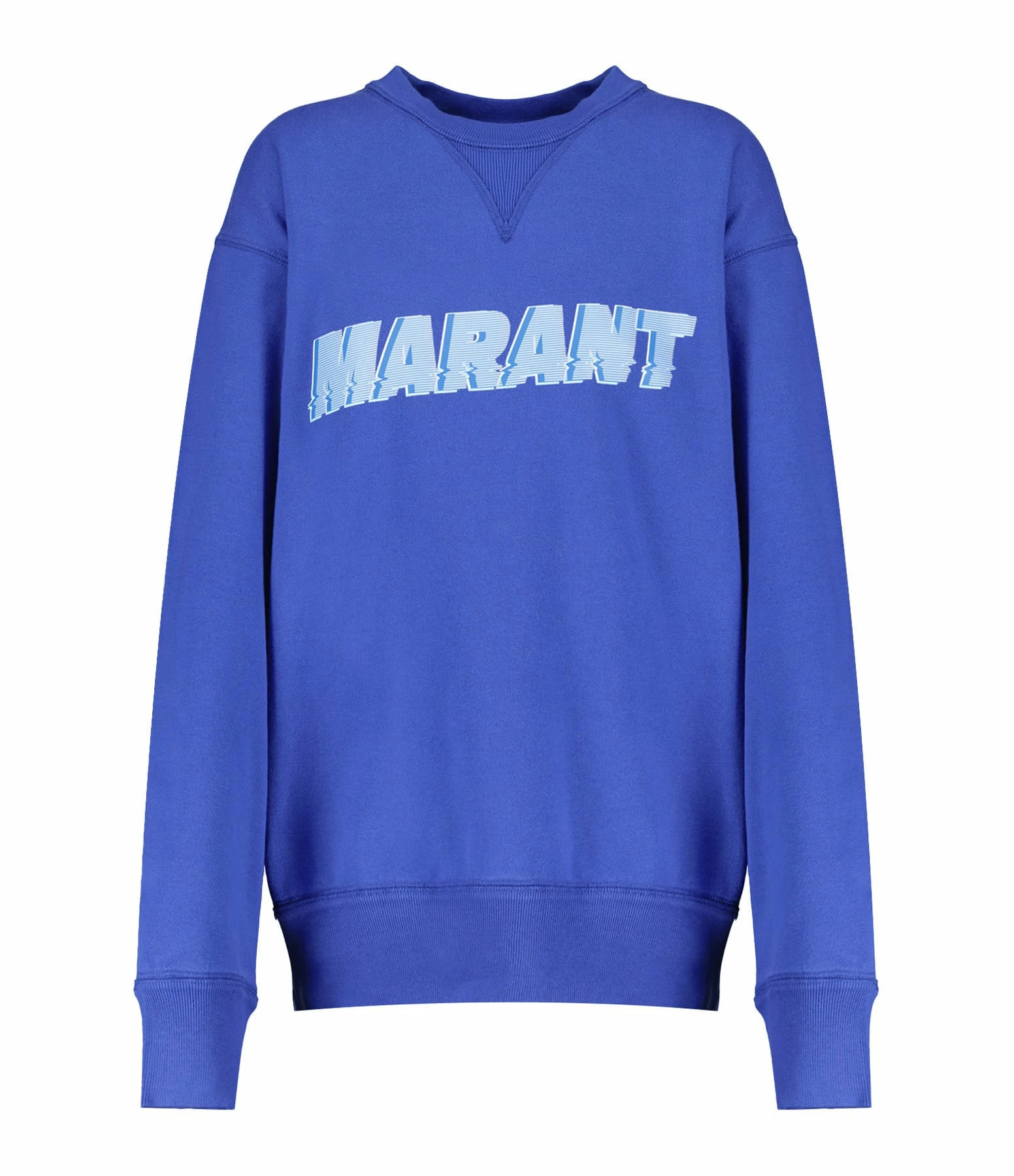 Sweatshirt en coton bleu électrique. Inscription “MARANT” bleue flockée sur le devant. Col rond. Manches longues. Coupe droite. Base droite.