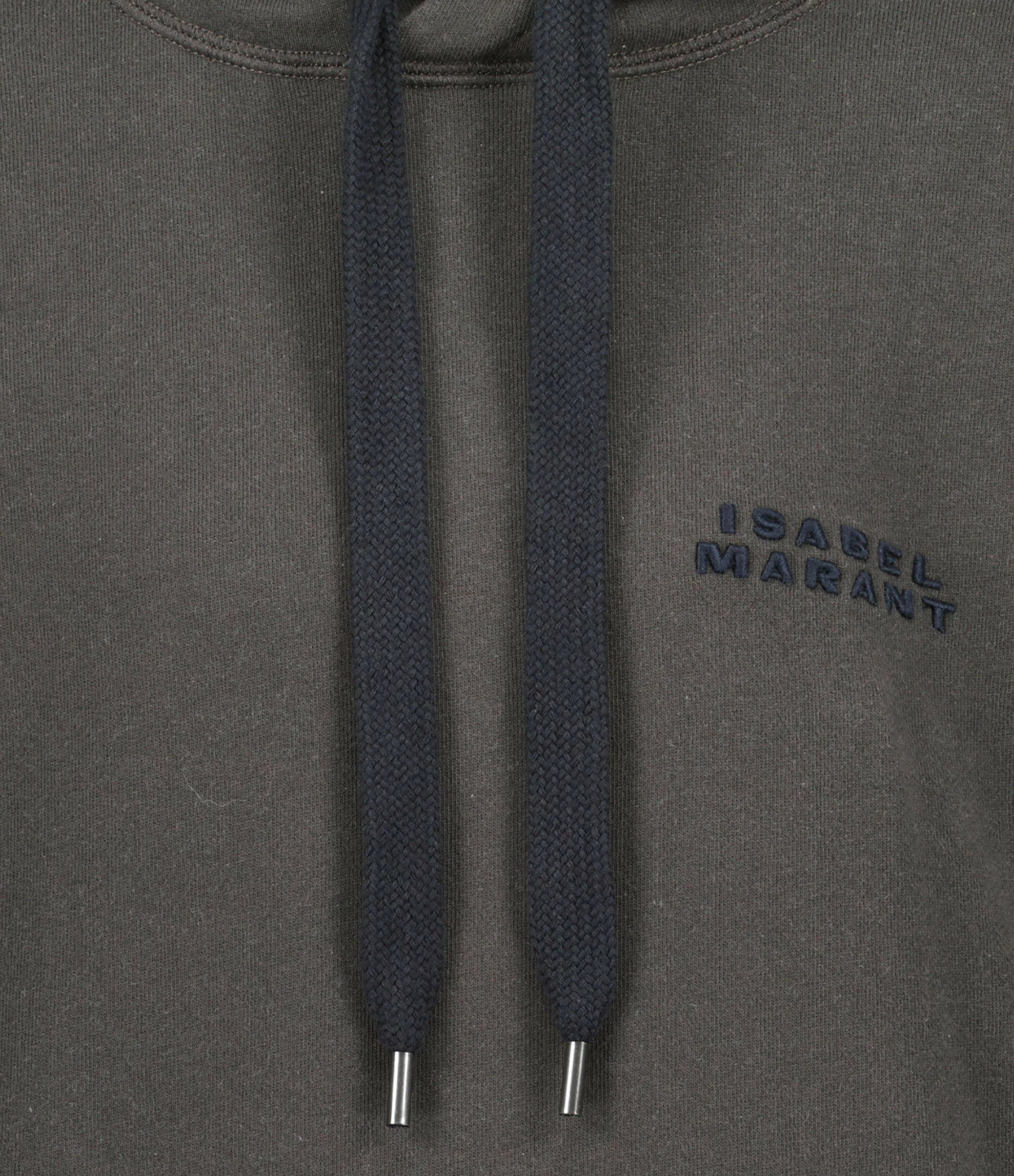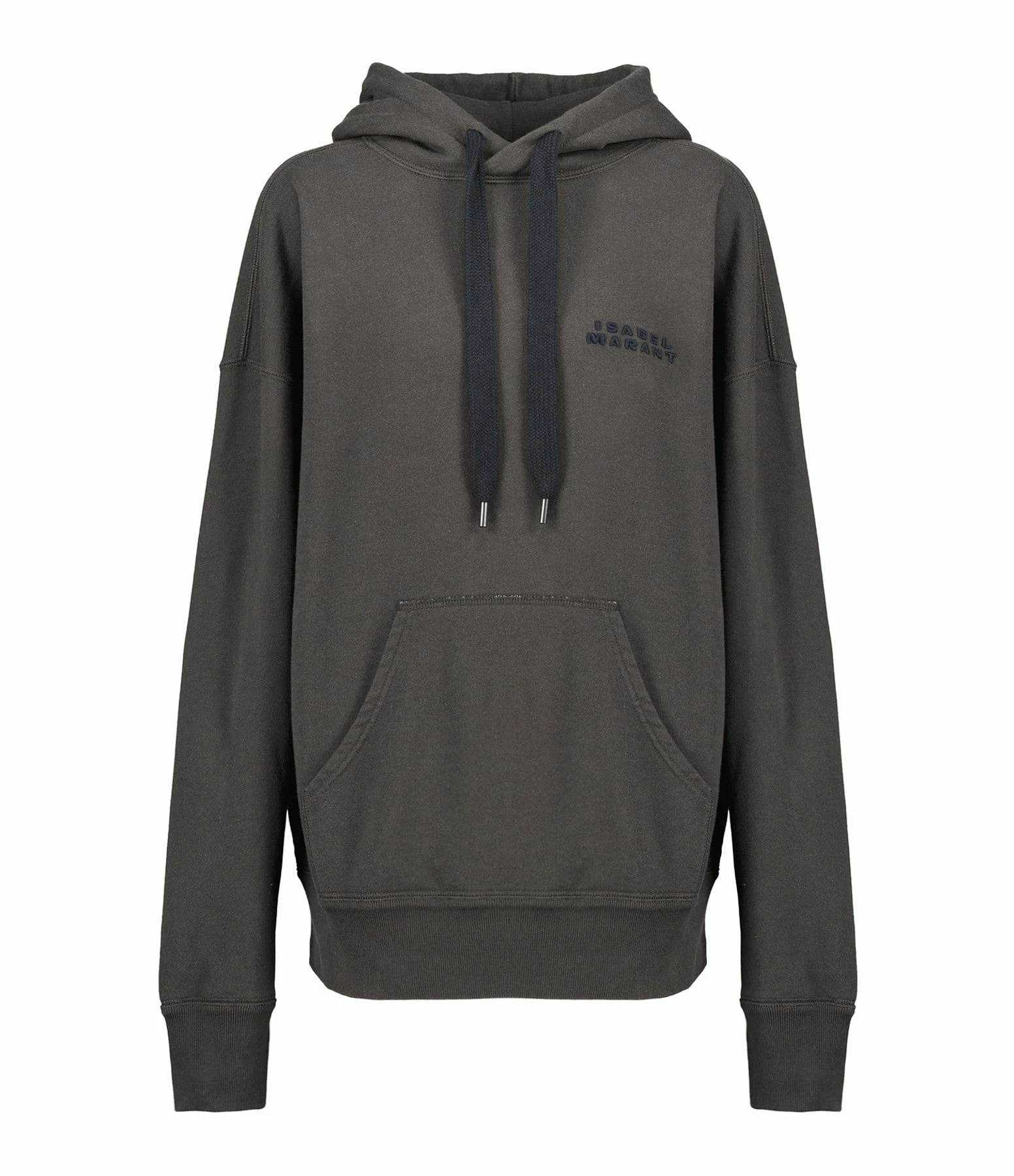 Sweatshirt en coton noir avec inscription brodée ton sur ton “ISABEL MARANT” sur la poitrine. Col à capuche avec liens de serrage. Une poche kangourou à l’avant. Manches longues avec poignets côtelés. Coupe ample. Base droite côtelée.