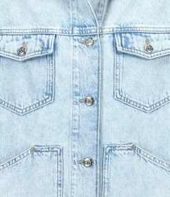 Vestes en coton bleu roi. Patch cœur “MAISON LABICHE Paris” brodé sur le devant. Col chemisier. Manches longues avec fentes et poignets boutonnés. Fermeture boutonnée sur le devant. Boutons effet corne. Deux poches plaquées sur le devant. Coupe droite. Base droite.