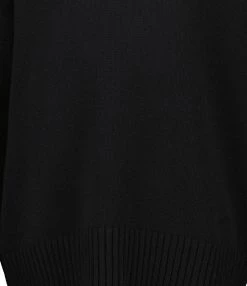 Pull en maille de laine écru. Col montant côtelé. Manches longues avec poignets côtelés. Coupe ample. Base droite côtelée.