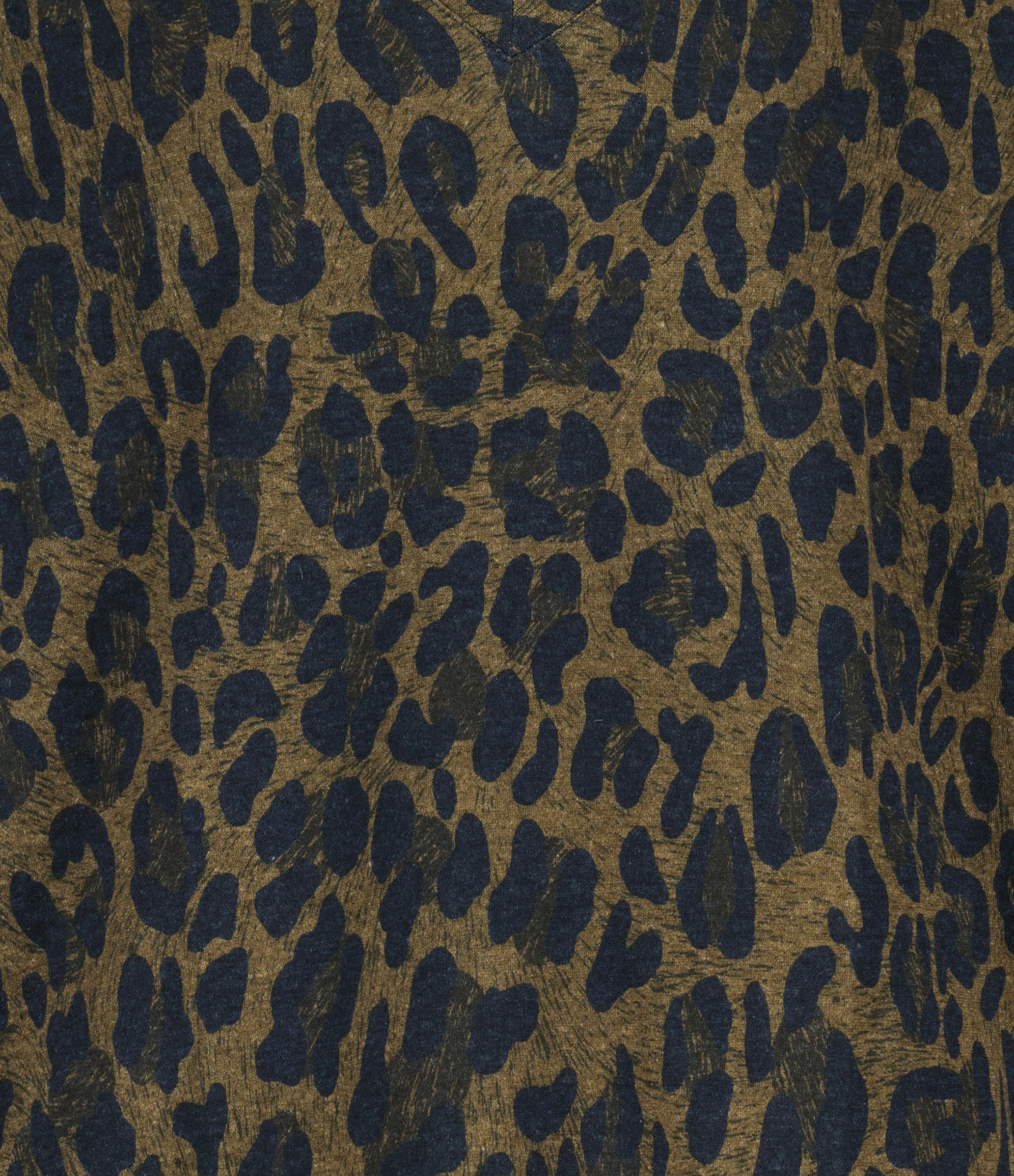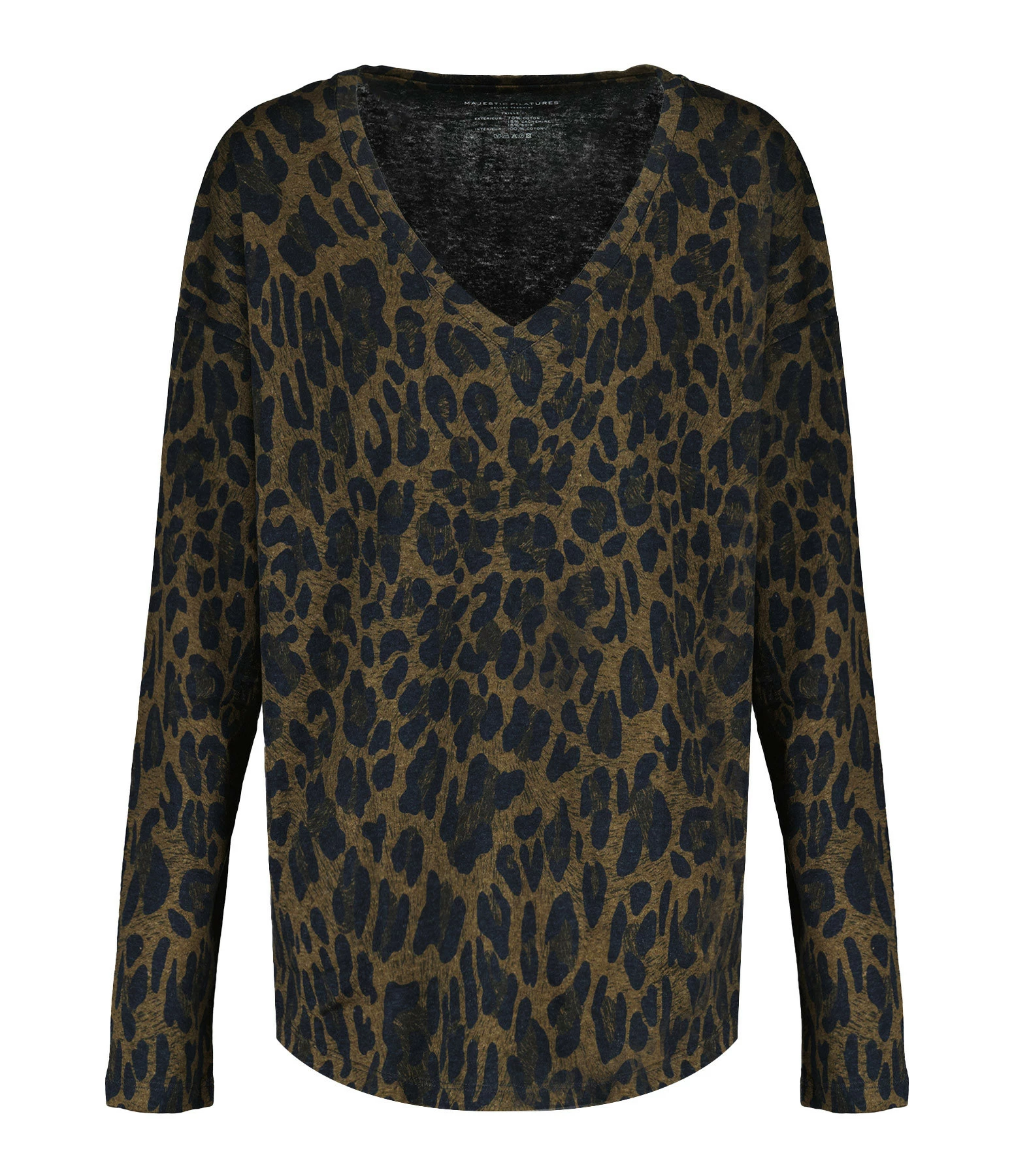 Tee-shirt en coton à imprimé léopard. Col V. Manches longues. Base arrondie.