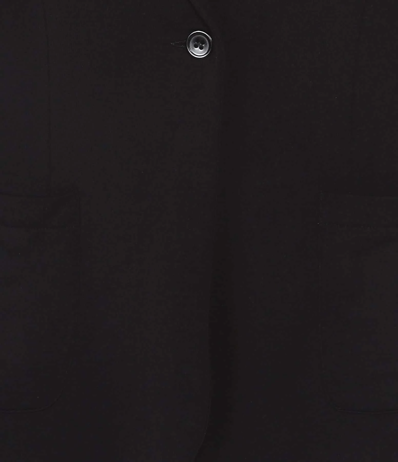 Veste blazer noir pour femme. Col tailleur fermé par un bouton. Manches longues. Deux poches plaquées à l’avant. Base droite légèrement arrondie. Non doublée.