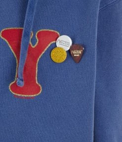 Sweatshirt à capuche en coton corail avec sérigraphie “JOY” en rouge sur le devant. Trois badges côté cœur. Poche kangourou. Manches longues. Base droite.