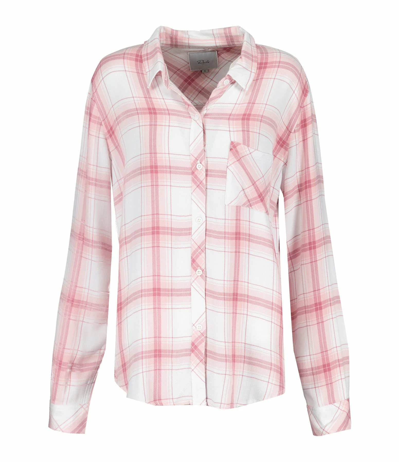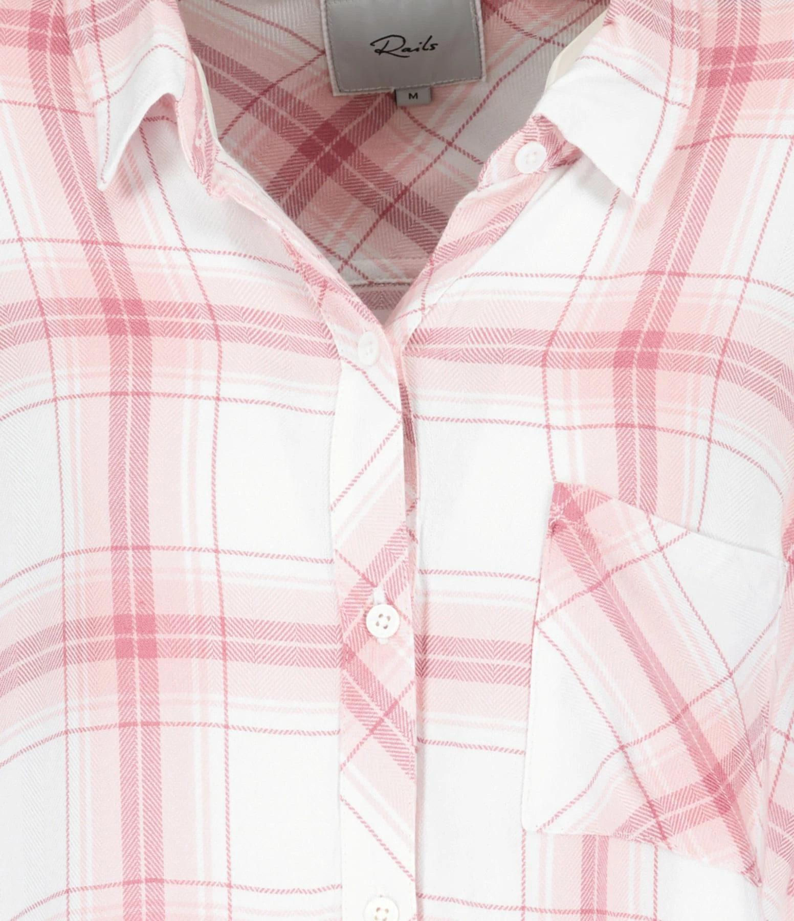 Chemise rose et blanche à carreaux. Col chemise. Manches longues. Fermeture boutonnée. Une poche plaquée poitrine. Coupe droite. Base arrondie.