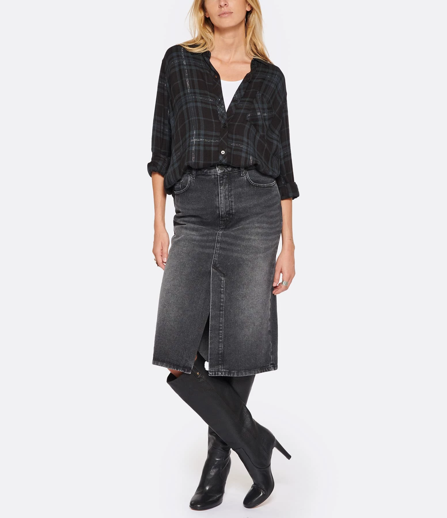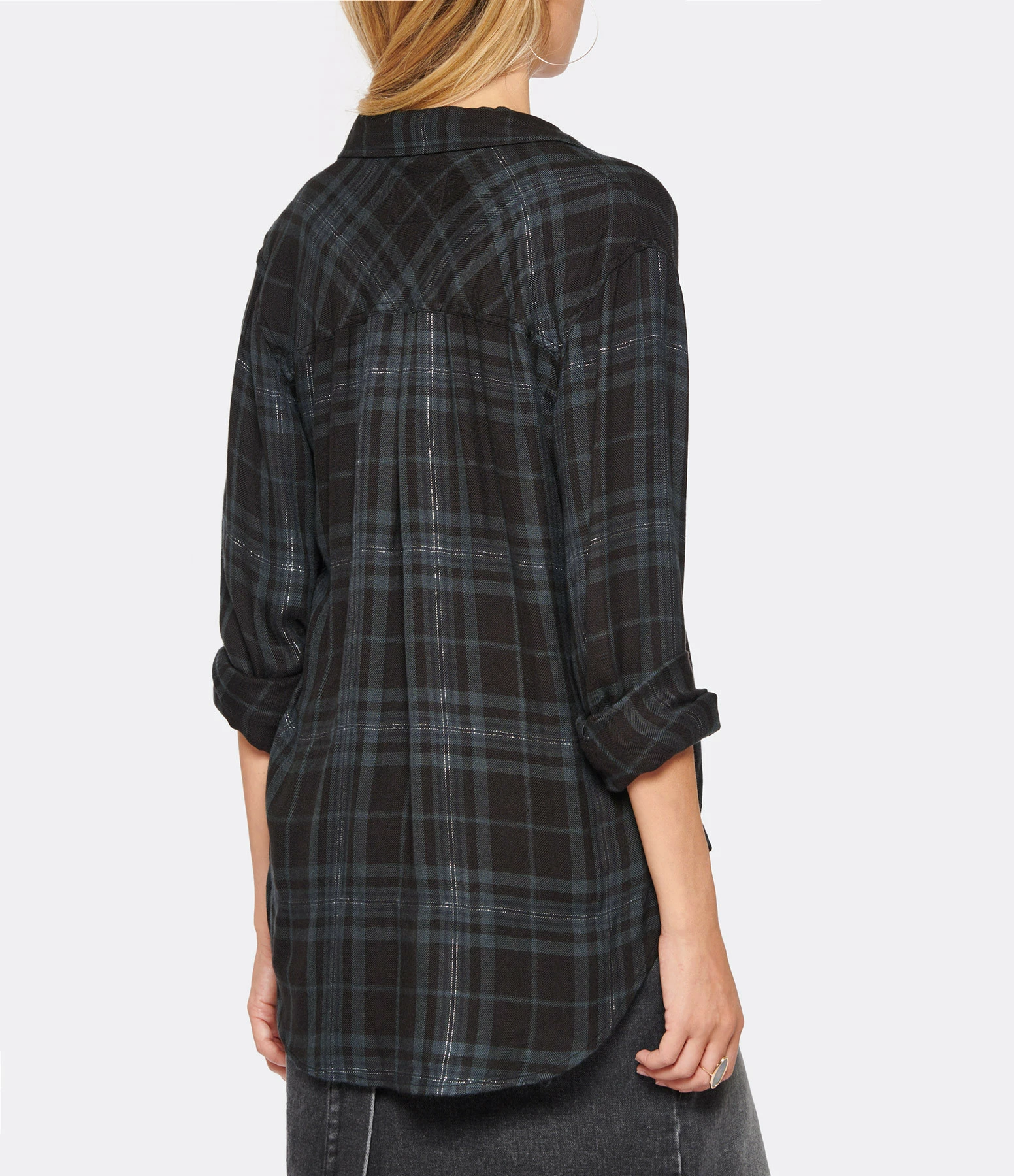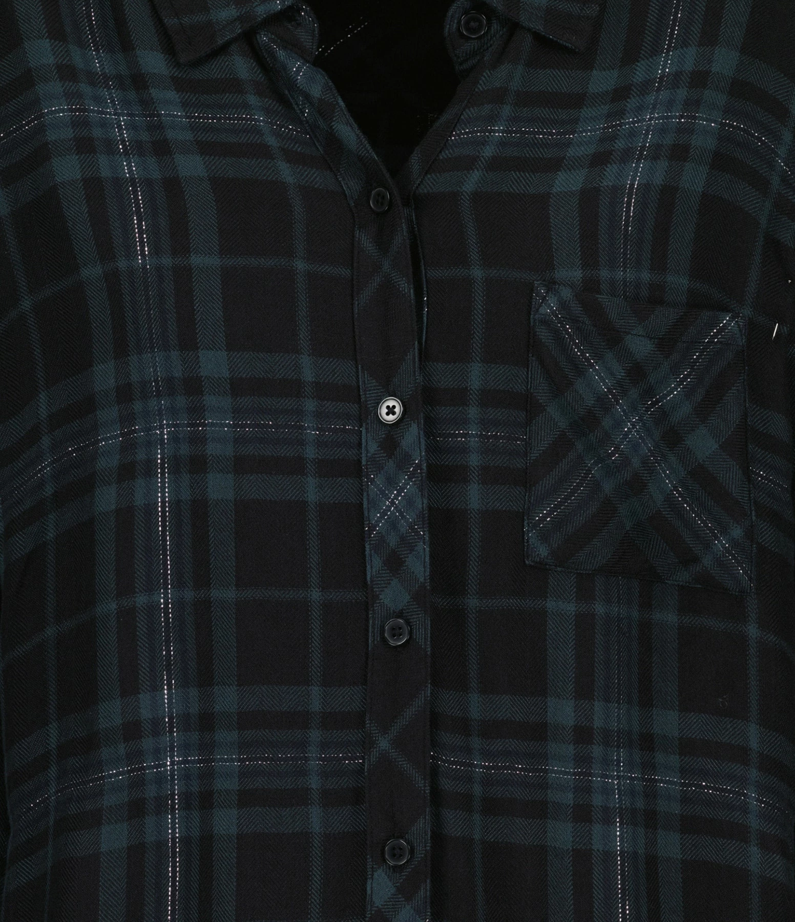 Chemise à carreaux vert foncé et noire. Col chemise. Manches longues. Fermeture boutonnée. Une poche plaquée poitrine. Coupe droite. Base arrondie.