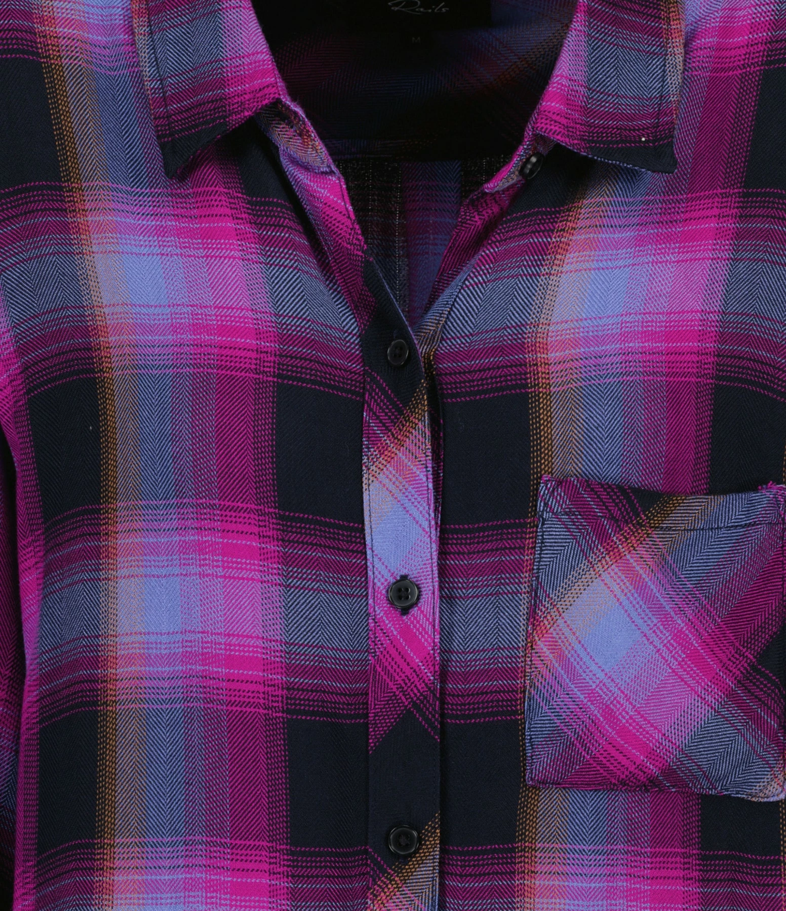 Chemise à carreaux multicolore. Col chemise. Manches longues. Fermeture boutonnée. Une poche plaquée poitrine. Coupe droite. Base arrondie.