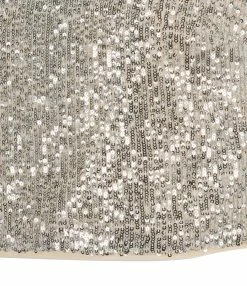 Jupe longue à sequins argentés soulignée de fronces. Fente latérale sur le devant. Fermeture zippée invisible dans le dos. Coupe près du corps. Base droite. Doublée.