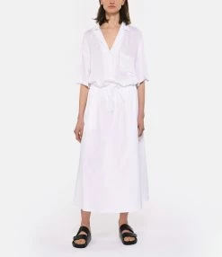 Short taille haute blanc en dentelle de coton. Fermeture par crochet et zip. Passants pour ceinture. Deux poches à l’avant. Base droite.