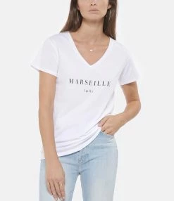 Tee-shirt Lulli Marseille Col V Coton Bio Blanc, Collaboration Jeanne Vouland X Lulli