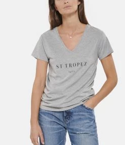 Tee-shirt Lulli St-Tropez Col V Coton Bio Blanc, Collaboration Jeanne Vouland X Lulli