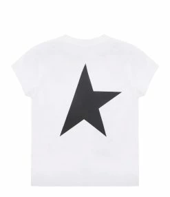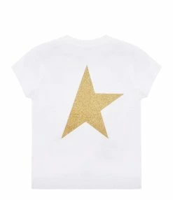 Golden Goose Tee-shirt Enfant Star Manches Longues Coton Blanc Doré